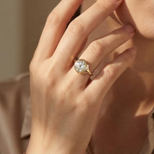 Round Moissanite Classic Ring – 2ct Brilliant Diamond Cut 18K Gold Vermeil