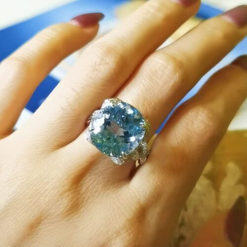 Santa Maria Aquamarine Ring – 9.55ct Vivid Blue Cushion Cut (Ribbon Design)