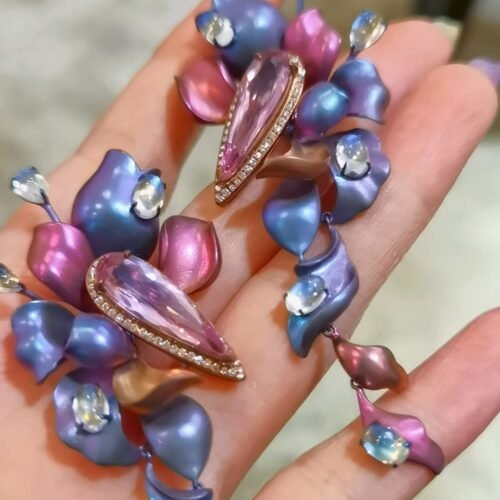Titanium Morganite Earrings – Art Nouveau Morandi Gradient Bloom