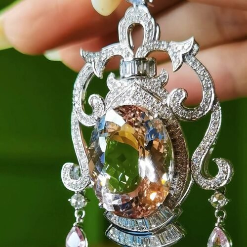Morganite Pendant Necklace – 18.8ct Luxury Chandelier Pink Beryl
