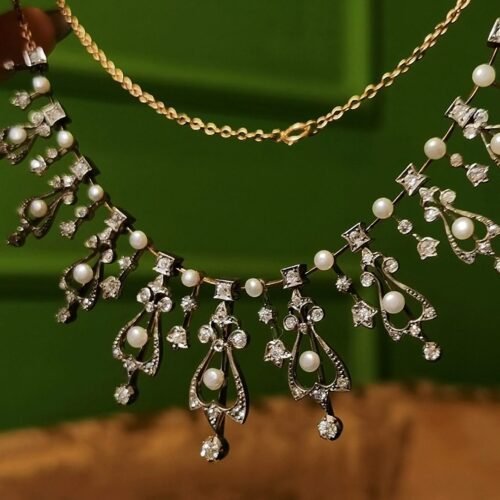 Edwardian Natural Wild Pearl & Diamond Necklace – Platinum Tiara Convertible (c. 1900)
