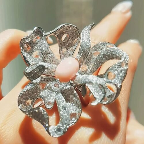 Conch Pearl Flower Ring – Hand-Carved Wax Rare Pink Flame