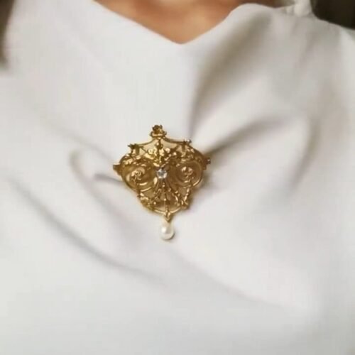 Art Nouveau Lion Head Brooch – 1880s French Antique (18k Gold & Diamond)