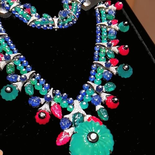 Tutti Frutti Style Necklace Set – Carved Emerald, Ruby & Sapphire (High Jewelry)