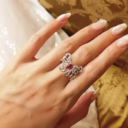 Ruby Butterfly Ring – Luxury Red Gemstone and Diamond Setting
