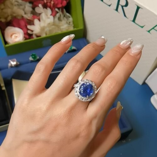 Royal Blue Sapphire Ring – Velvet Glow Floral Pave Design