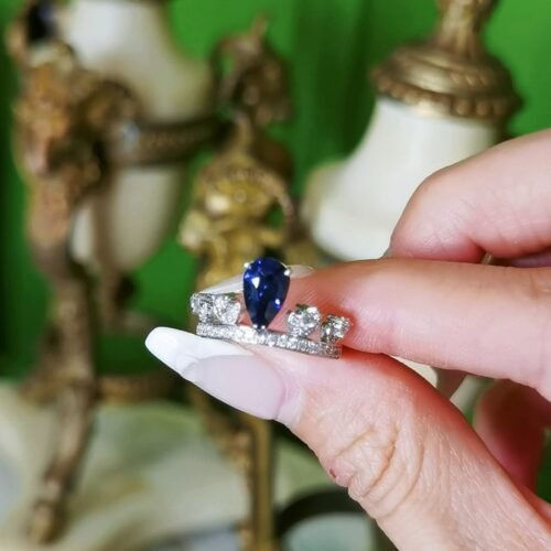 Josephine Sapphire Tiara Ring – 18k White Gold (Pear Cut)
