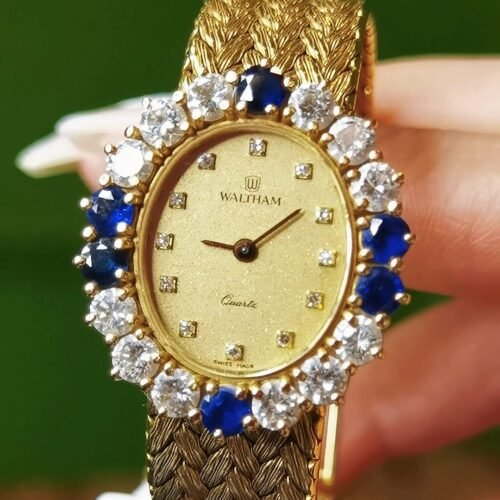 Vintage Waltham 18k Gold Watch – Wheat Bracelet & Gemstones (American Heritage)