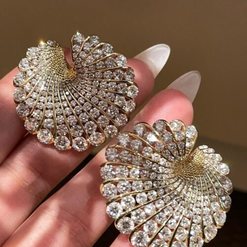 Diamond Spiral Stud Earrings – 18K Yellow Gold Ribbed Wave Design