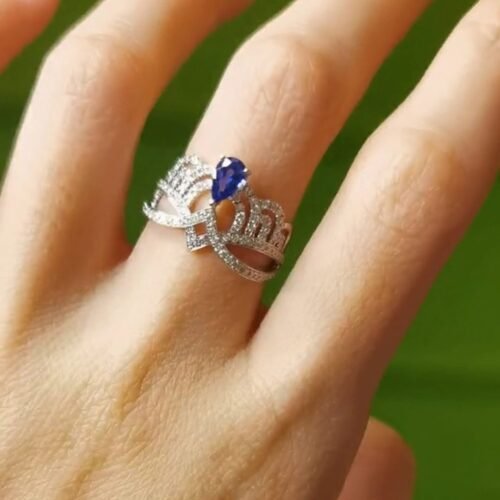 Josephine Sapphire Tiara Ring – 18k White Gold (Pear Cut)