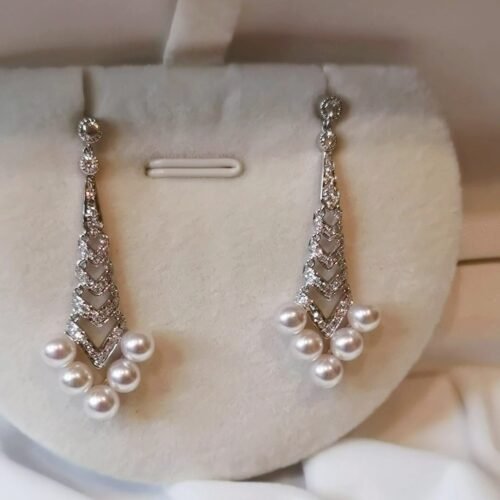 Art Deco Pearl Earrings – 18K White Gold Akoya Diamond Drops