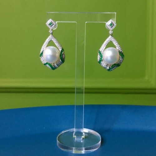Art Deco Emerald & Australian Pearl Earrings – Mystery Set (18k Gold)