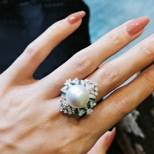 Invisible Set Emerald & Pearl Ring – 13-14mm South Sea (Convertible Pendant)