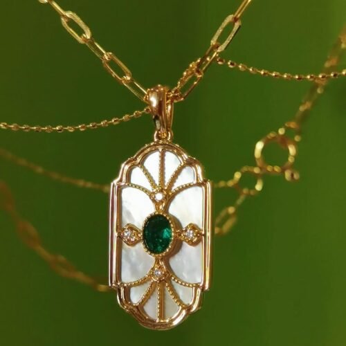 Art Deco Colombian Emerald Pendant – 18k Gold Layered Necklace (Muzo Green)