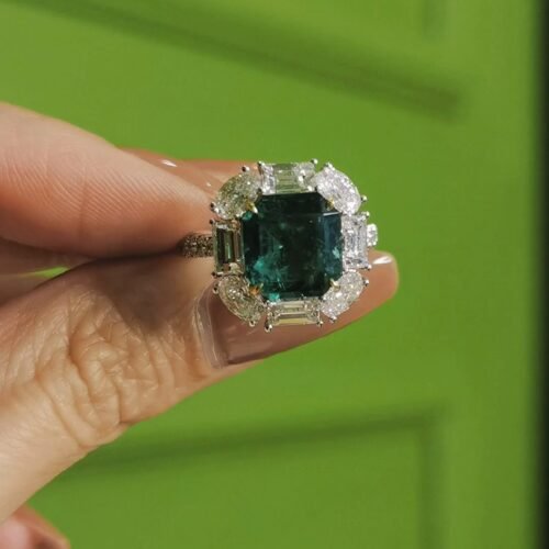 Vivid Green Zambian Emerald Ring – 3.57ct Glass Body (2.5ct Diamond Halo)