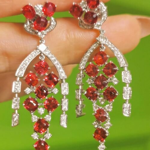 Jedi Spinel Chandelier Earrings – Neon Red & Diamond Tassel (High Jewelry)