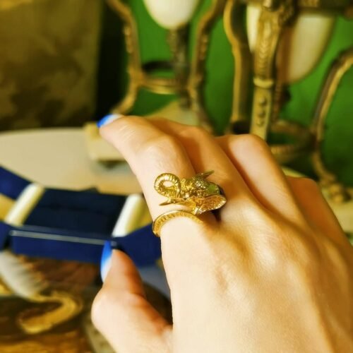 Elephant Lapis Ring – Italian 18k Gold 3D Totem Masterpiece