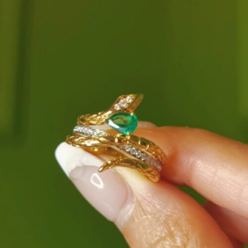 Emerald Snake Ring – 0.36ct Muzo Green 18K Gold Serpent
