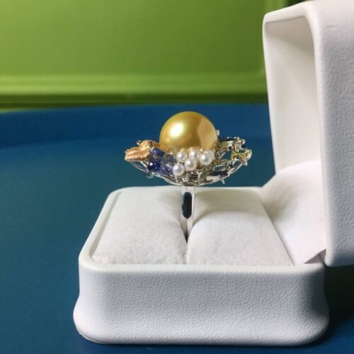 “Trésors sous-marins” 14.5mm South Sea Golden Pearl Ring – French High Jewelry (One-of-a-Kind)