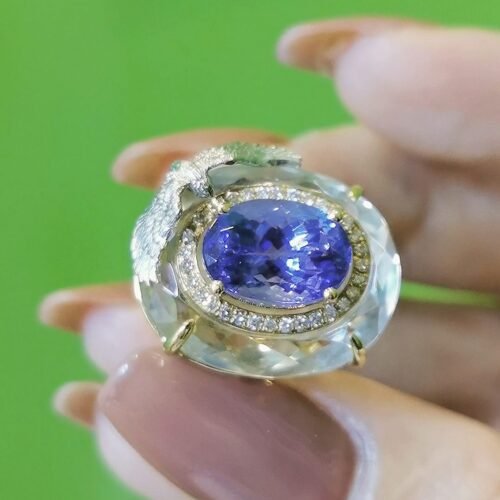 Tanzanite “Marveilles” Ring – 4.1ct Floating Gem & Eagle Motif (Rock Crystal Art)