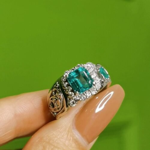 Three Stone Zambian Emerald Ring – 2.85ct Vivid Green “Trilogy” (Glass Body)