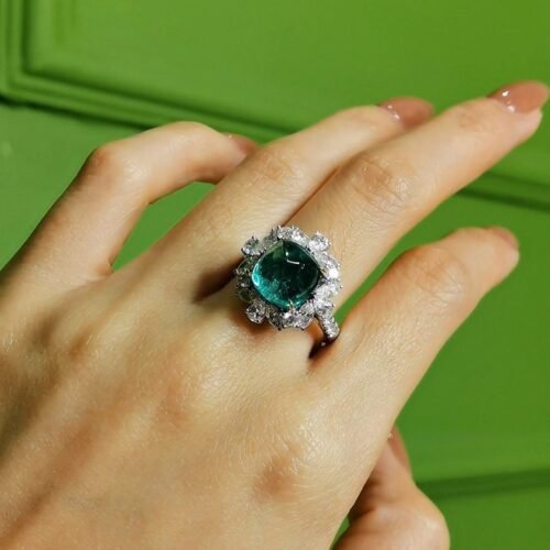 Sugarloaf Cut Zambian Emerald Ring – 4.3ct Vivid Green (Convertible Pendant)