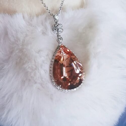 Pink Morganite Pendant Necklace – 22.57ct German Cut Pear Shape (18k Gold)
