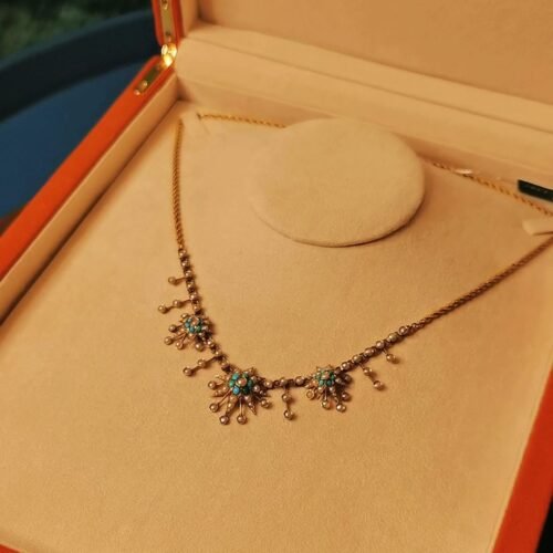 Victorian Star Pendant Necklace – 88 Wild Pearls & Turquoise (Star of David)