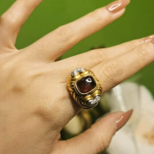 Victorian Rubellite Diamond Ring – 18k Gold Antique 1850s (Cabochon)