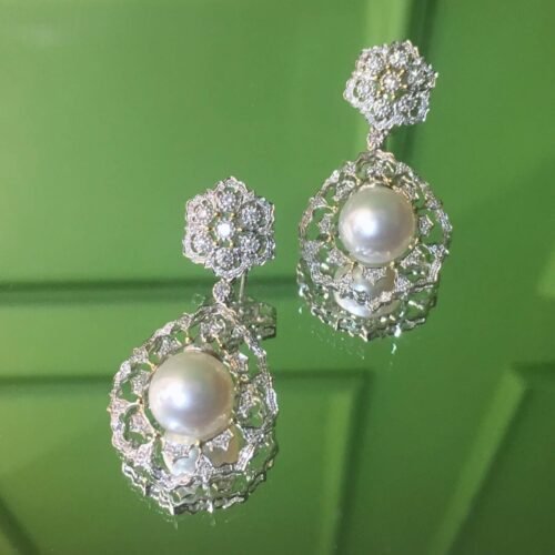 Buccellati Style Australian Pearl Earrings – 18k Gold Lace (Convertible)